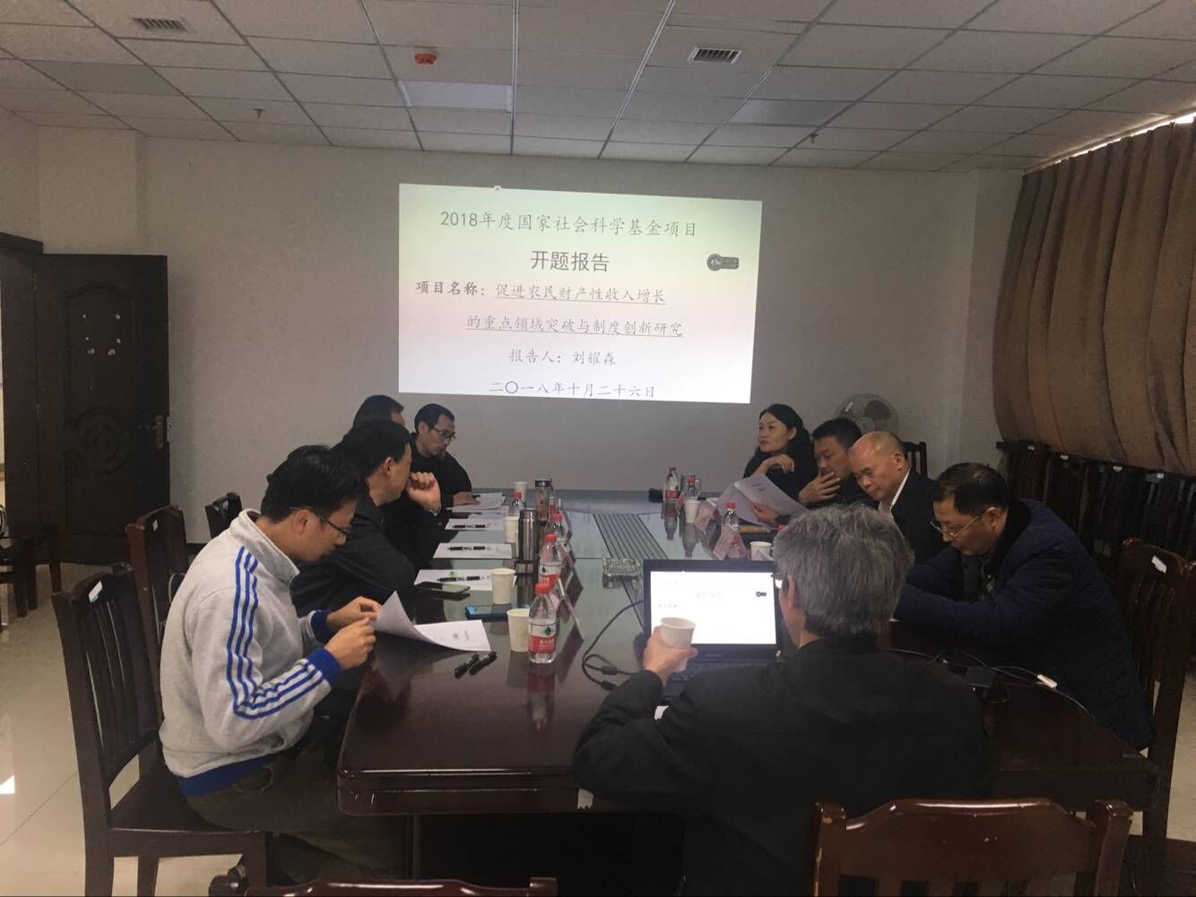 10月26日下午,由我院刘耀森教授主持的2018年国家社科基金重点项目“促进农民财产性收入增长的重点领域突破与制度创新研究”在科技楼311会议室举行了开题报告会。以万州区政协副主席徐素环教授,学校组织部长陈孝胜教授、三峡研究院邓晓霞教授,太阳成tyc7111cc副院长范远江教授、杨贵中教授、科研处副处长张建升博士,陈兴贵教授、唐治祥教授组成的专家组及课题组成员出席了会议。会议由学院院长李炯光教授主持。