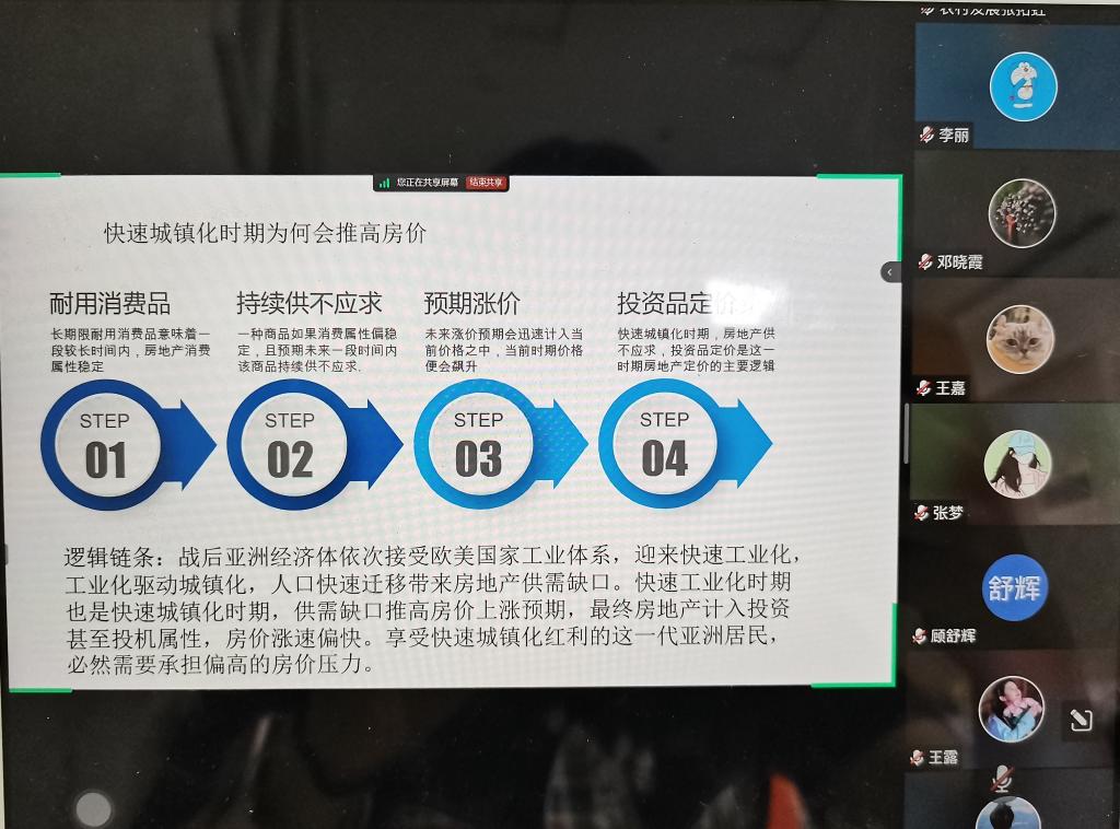 徐梁博士以《新时期的中国地产经济——基于产品属性变动视角》为题,从中国地产的过去、现在和未来三个方面分析了从中国地产大趋势理解地产政策;刘娜博士以《人工智能对全球价值链重塑影响》为题,从全球价值链重塑背景出发,阐述了人工智能发展对全球价值链重塑的影响和影响机制,剖析了中国人工智能参与全球价值链重塑的特征分析和路径选择;颜冬博士以《乡村振兴的思考与破局---以青海州县发展为例》为题,分析了乡村振兴发展过程中存在的各种深层次问题,不同地区之间的发展态势存在的差异,根据新经济地理学的中心外围理论差异,寻求实践工作的攻坚和破局;讲座结束后,大家就自身研究方向和学习情况与三位博士进行了沟通和交流。在交流提问环节,三位博士与全院师生亲切互动,气氛热烈。