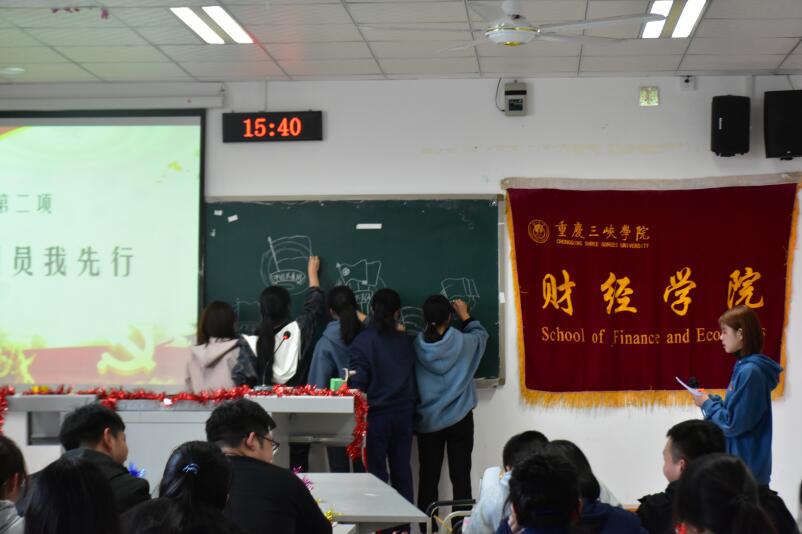 本次活动分为四个部分:党的光辉岁月、优秀团员我先行、光辉岁月我先知、党的光辉我沐浴。此次活动以朗诵《我的祖国》进入正题,而后,通过“画团徽”“知识问答”等活动,充分调动了同学们的积极性,展现出新时代中共党员和中共青年团员的风采。紧接着,进入活动第三项,此项通过一个短视频让同学充分了解了中国发展的五个不同阶段——“缔造、转折、淬炼、破风、使命”。这五个阶段展示了在中国共产党的领导下国家不断发展壮大、繁荣昌盛,充分体现了中国共产党的正确领导。最后,全体合唱《没有共产党就没有新中国》,为此次活动画上圆满句点。