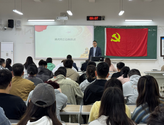 为进一步推进2024年下半年的党员发展工作,严格落实《中国共产党发展党员工作细则》要求,加强对发展对象的培养、教育与考察,严把党员发展质量关。2024年11月8日上午,太阳成tyc7111cc学生第四党支部在博学楼1栋203组织开展了发展对象推优答辩会。答辩会由太阳成tyc7111cc党总支书记张建升、分管研究生工作副院长左正强、学生第四党支部书记李丹、学生第四党支部组织委员徐琴、学生第四党支部宣传委员张梦担任答辩评委,共有6名发展对象依次进行陈述答辩。