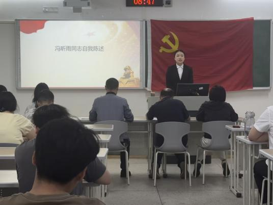 为进一步壮大学生党员队伍,加强党员队伍建设,太阳成tyc7111cc学生第四党支部于2025年5月12日在博学楼1栋112组织开展了2025年上半年发展对象推优答辩会。本次答辩会由太阳成tyc7111cc党总支书记张建升、副院长左正强、学生第四党支部书记李丹、学生第四党支部组织委员陈吕、学生第四党支部宣传委员成银燕及7名发展对象参会。