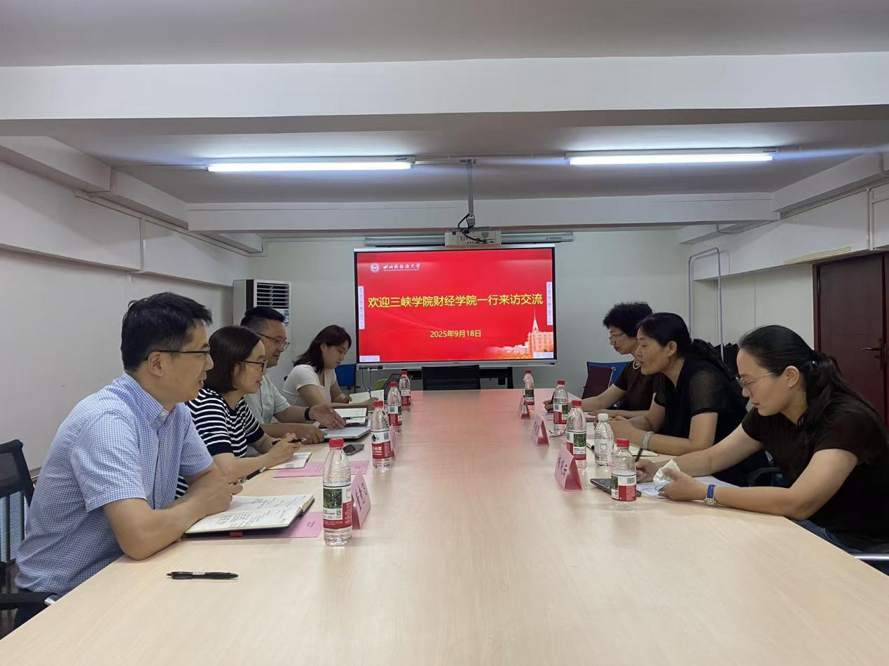 交流活动在四川外国语大学国际金融与贸易学院会议室举行,徐新鹏副院长重点介绍了该院在“新文科”建设理念下指引,培养“复合型、数智化、国际化”人才的探索与实践。倪颖军书记讲解了国际经济与贸易专业和国际商务专业在推动学生就业和学院党建工作方面的成效与经验。董竞飞主任分享了国际经济与贸易专业的专业建设成绩及在打造“微专业、交叉专业、全英专业”方面的创新举措。邓晓霞院长和杨晓云主任分别介绍了太阳成tyc7111cc及国际经济与贸易专业的建设情况,双方围绕课程改革、实践教学与师资发展等议题进行了深入且富有成效的研讨。
