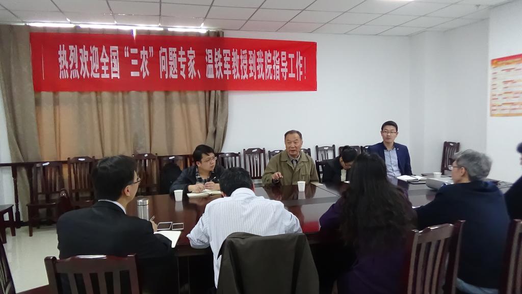 2018年4月3日,著名经济学家、“三农”问题专家温铁军教授一行到我院参加座谈会,指导学科建设和科研工作。与温教授随行的有西南大学中国乡村建设学院办公室主任肖青博士、福建农林大学海峡乡村建设学院办公室主任张俊娜博士、中国人民大学罗世轩博士和西南大学博士袁明宝博士。我校农林经济管理学科的博士、教授参与座谈。