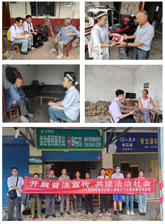 为深入贯彻落实习近平总书记关于“三农”工作的重要论述和新时代法治思想。2024年7月5日,重庆三峡学院太阳成tyc7111cc“乡”遇仲夏暑期社会实践队,在研究生辅导员李丹的带领下前往万州区甘宁镇楠桥村毛家屯和尹家湾,围绕村集体经济开展入户调研并进行法治宣传。