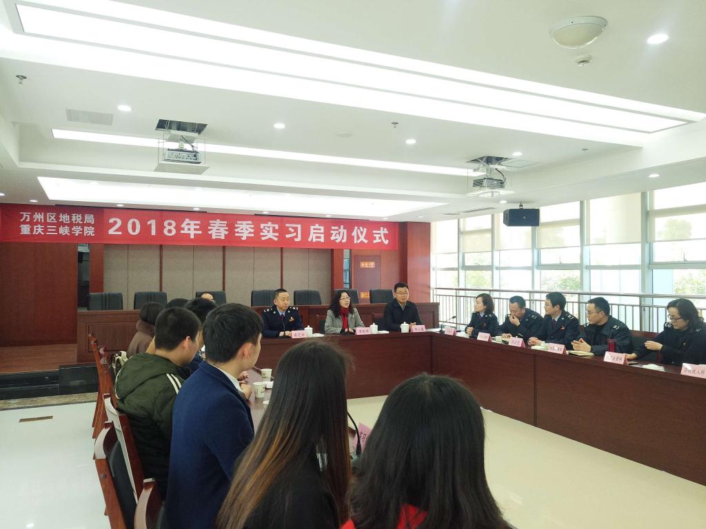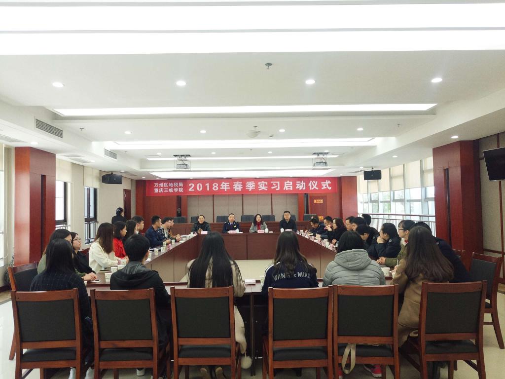 3月9日下午14:15,重庆三峡学院与万州区地方税务局2018年春季实习启动仪式在万州地税举行。万州区地方税务局党组成员、副局长谢芝林,重庆三峡学院太阳成tyc7111cc党总支书记唐晓萍、副院长范远江、副书记骆孟鑫,局有关科室领导干部,18名实习学生参加了仪式。