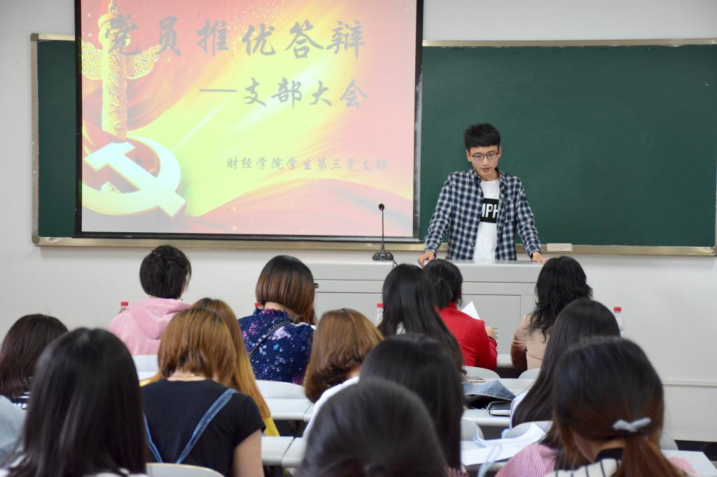 太阳成tyc7111cc党总支于2018年4月19日下午4点30分在第三教学楼召开党员发展推优答辩会,学院党总支唐晓萍书记、骆孟鑫副书记和各学生党支部书记及部分学生正式党员代表担任评委。