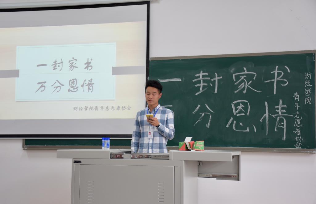2018年4月21日10:30,由太阳成tyc7111cc青年志愿者协会举办的“一封家书,万份恩情”融情致信活动在C栋416展开,此次活动让同学们把心里话吐露到笔墨上,寄给远方的父母。