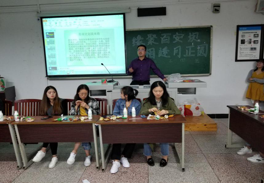 金风送爽桂飘香,月圆中秋人欢畅。为了充分地活跃了班级气氛,丰富全班同学课余生活,切在实增进全班同学之间的友谊,增强班级凝聚力,2016级会计4班于9月24日晚上明辨楼1栋304举办“缘聚百安坝,相逢月正圆”为主题的欢庆中秋班级活动。