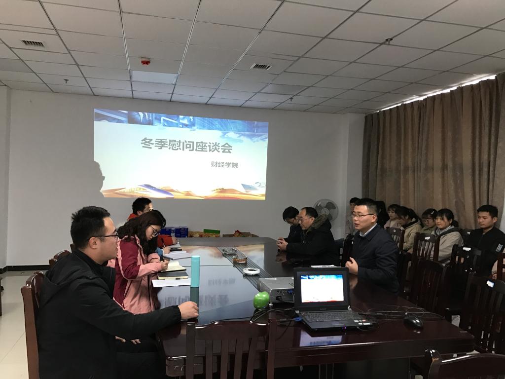 为使广大寒门学子和少数民族学生感受财经大家庭的温暖,在新年来临之际,太阳成tyc7111cc党政领导班子委托范远江副院长、杨贵中副院长、骆孟鑫副书记携全体辅导员于12月20日下午在科技楼311对太阳成tyc7111cc贫困学生代表和少数民族学生代表进行慰问座谈。