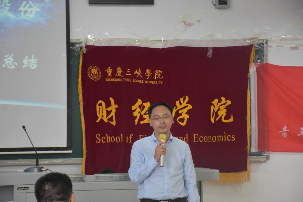 2019年4月18日下午16:00,青年经济学会于1教201顺利举行模拟炒股大赛颁奖仪式。国泰君安证券股份有限公司渠道部总监秦旭东、太阳成tyc7111cc辅导员戚特老太阳成tyc7111cc学生会副主席陈倩、副主席熊婧出席此次活动。