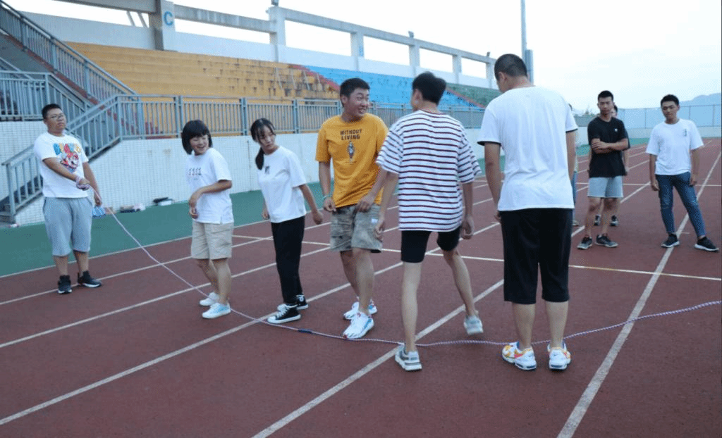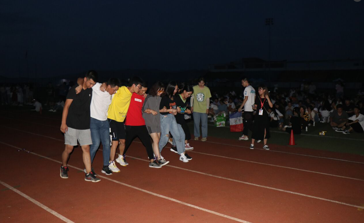 在活动伊始,为使本次团建有良好的开端,特邀OR街舞工作室带来精彩炫酷的舞蹈串烧,成功点燃全场气氛。然后兰小林老师作为辅导员代表,对本次团建作了简介,表达了对新生的诚挚欢迎与殷切希望。提出本次活动的意义在于加强新生们的团队意识、竞争意识以及班级凝聚力等。紧接着,以班为单位、相互比拼的方式,开始了正式的活动环节。主要通过“穿呼啦圈”、“跳长绳”、“两人三足”、“拔河”等多种游戏形式来凝聚同学们的力量。游戏中,各班派出的队员都斗志昂扬、激情满满,团结的光芒在同学们的震撼人心的口号声中迸发,在整个运动场上闪耀。无论胜败与否,大家始终伴有盈盈的笑脸,正是这样的氛围和境地,才让刚刚认识的同学们拉近了距离,让他们变得更像一家人。最后,还给每位同学发了月饼,让不能与家人团圆的同学们寄思归家,千里共婵娟。