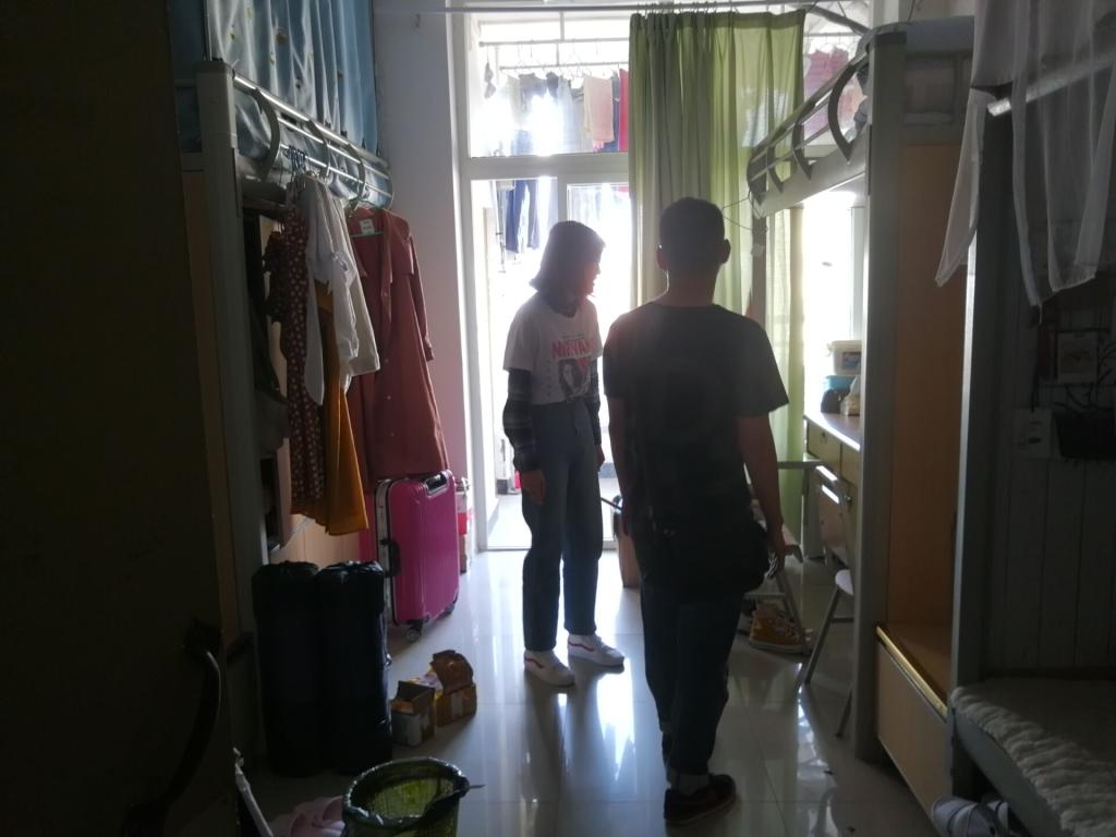 为进一步了解我院学生在校的住宿条件和生活状况,同时为了检查宿舍使用大功率电器问题,保证十一放假前寝室卫生安全,2019年9月26日下午四点,太阳成tyc7111cc辅导员陈彦捷对学生宿舍进行走访检查。