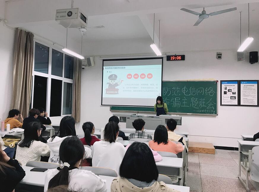 在本次预防诈骗系列班会中,有的班级通过组织同学们观看反诈骗的视频,用真实案例来提高同学们的预防诈骗的意识;有的班级采取各宿舍分享诈骗的小故事和防诈骗的技巧,用他人的经历来提醒同学们;有的班级是辅导员结合近期发生在本校校园里的真实诈骗案例以及讲解最新的一些网络诈骗手段,让同学们对诈骗手段了然于心,时刻保持警惕。
