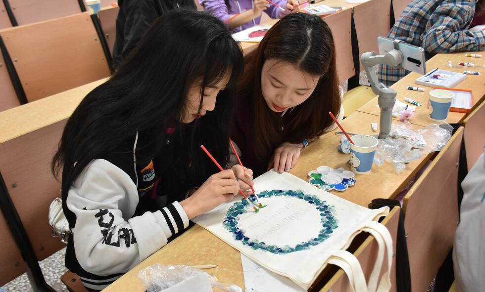 在活动负责人介绍本次活动初衷并说明活动要求后,各参赛队伍都积极投入到环保袋创作之中。在活动过程中,工作人员耐心为参赛选手提供帮助的同时也积极参与到设计制作过程中。随着时间的流逝,选手们的创意也跃然于环保袋上,逐渐成型。小小的环保袋不但激发了同学们的想象力、创造力,也凝聚了大家对美以及生活的理解。活动最后参赛者和工作人员进行合照留念。