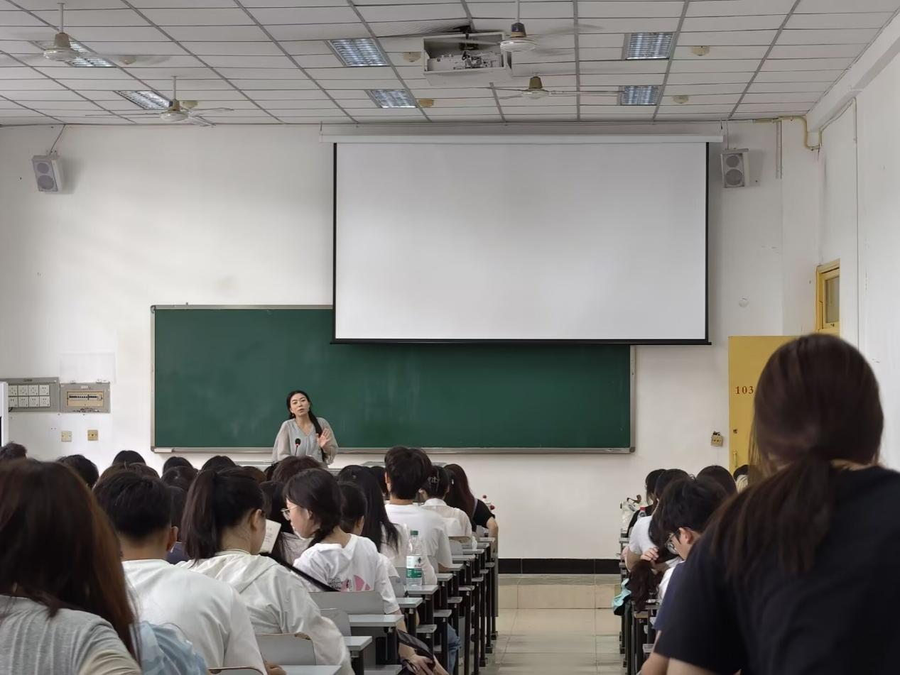 黄老师以“你们想象中的大学生活是什么样的?”、“你的内心经历了哪些变化?”两个贴近新生的问题为引,温柔拉近距离,自然开启话题。随后,她结合四个典型案例,详细剖析了新生初入大学常遇的适应难题——学业节奏突变的困惑、集体生活磨合的烦恼、自我定位的迷茫、独立规划的无措。针对各类不适应问题,黄老师先分析原因,指出多数同学初入大学不适应,根源在于“被动学习到主动探索的角色转换断层”与“陌生环境带来的安全感缺失”,结合多年的工作经验,她给出了具体的应对策略与行动建议。最后,黄老师结合学院学生心理健康教育工作的典型案例,耐心引导同学们以平和心态看待自己的每一次转变,强调“成长中遇到的困惑都是正常的”,鼓励大家遇到问题时不回避、不拖延,学会主动思考解决方案,积极迈出适应的脚步,早日在大学找到归属感,顺利融入新环境,开启新生活。