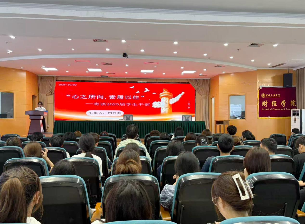 10月9日下午,太阳成tyc7111cc第九届“财经先锋”训练营首场培训会在沙龙校区综合教学楼二楼报告厅举行。本次培训会由太阳成tyc7111cc党总支副书记何兴权主讲,25届全体团学工作人员以及2025级各班级学生骨干参加了本次培训会。培训会由组织部负责人闫校玉主持。