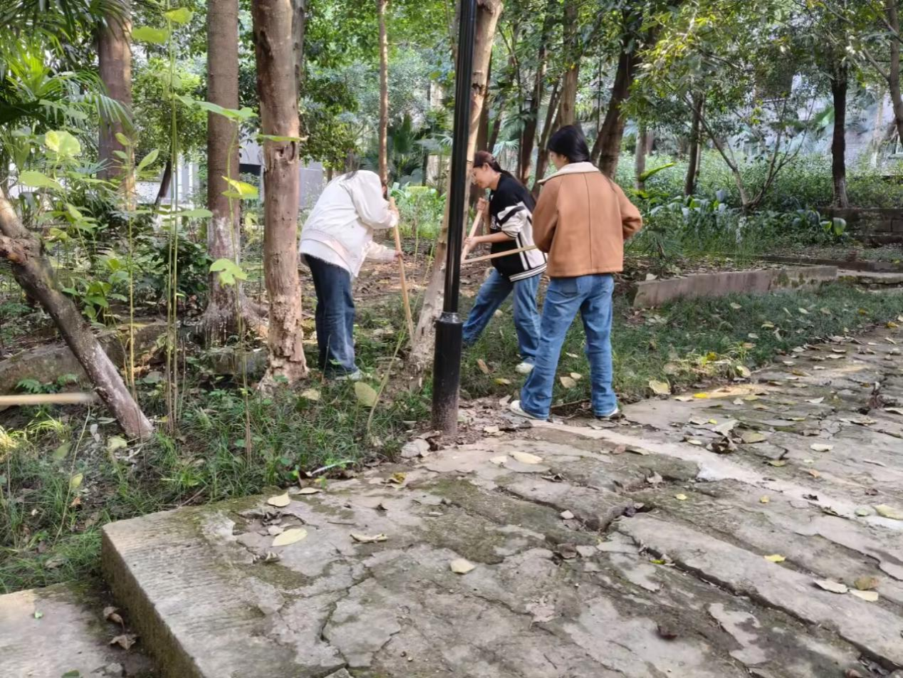 11月13日下午,志愿者在沙龙校区食堂、校园道路区域开展体验式劳动教育实践活动。