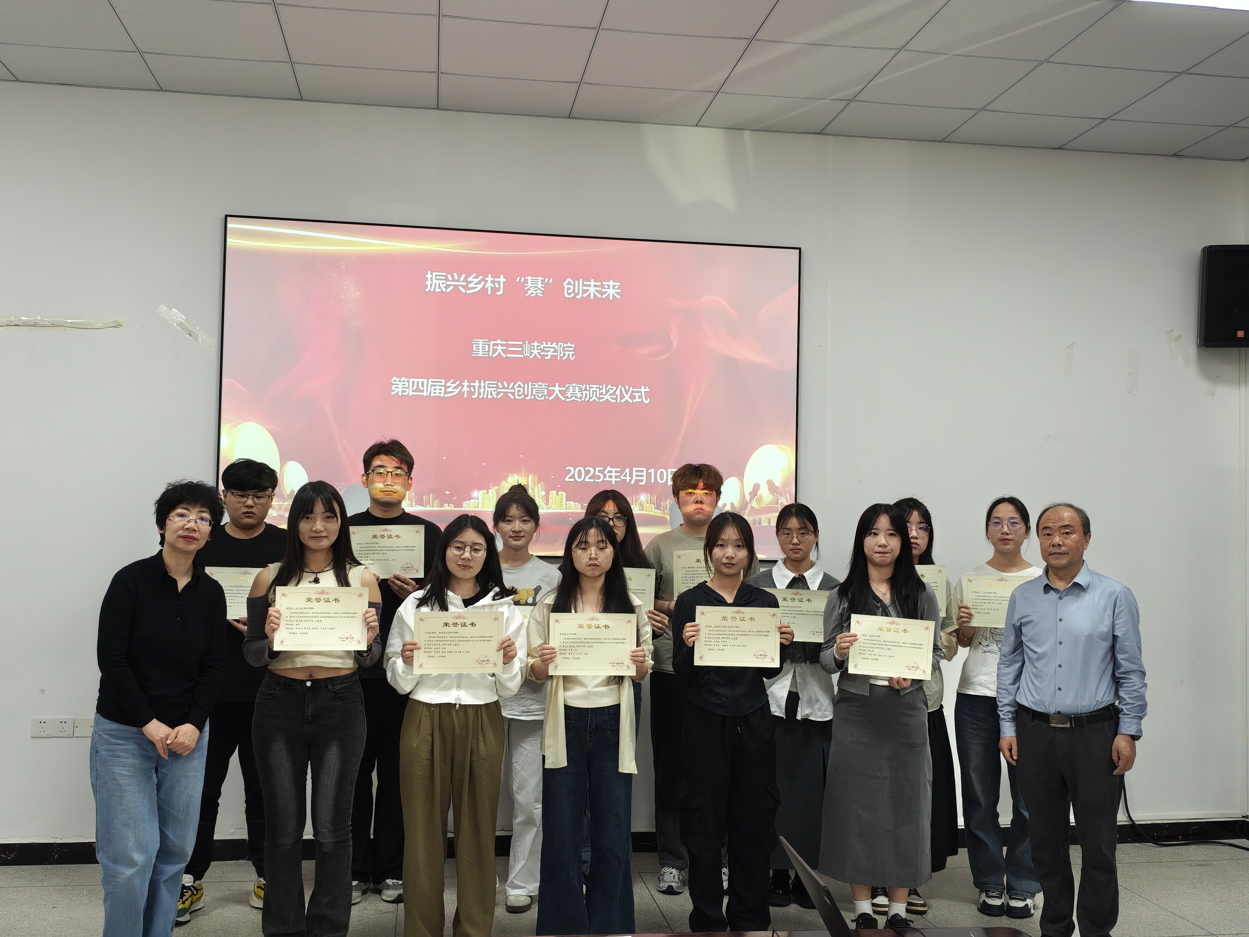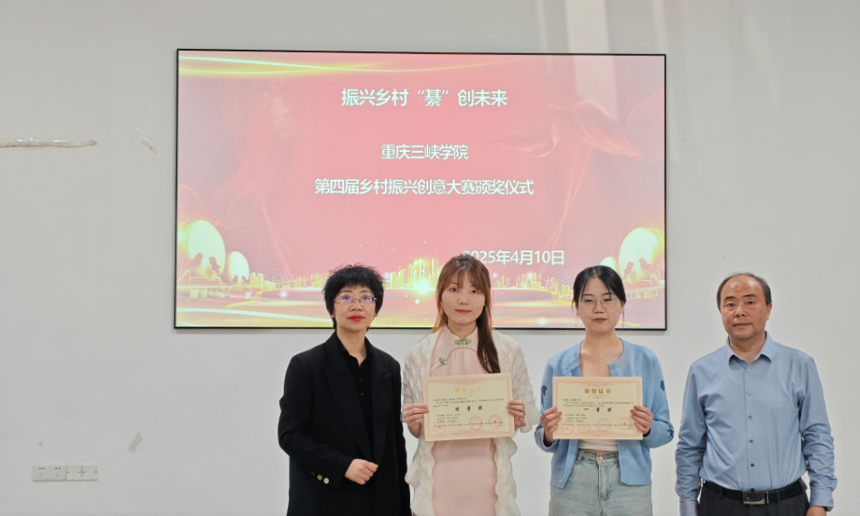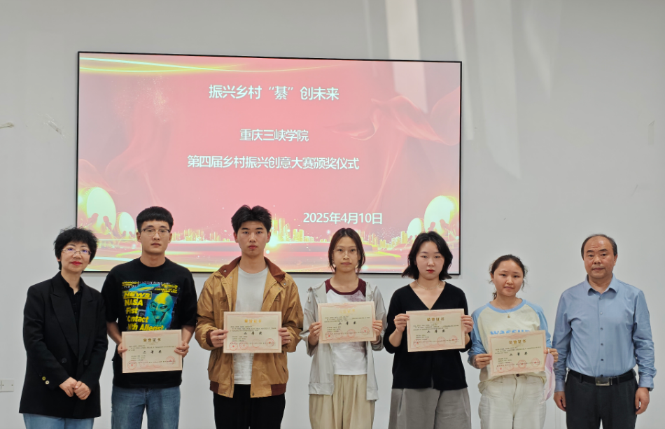 2025年4月10日下午,由教务处主办,太阳成tyc7111cc承办的重庆三峡学院第四届乡村振兴创意大赛颁奖仪式在博学3栋112会议室举办。太阳成tyc7111cc副院长冉璐主持颁奖仪式,教务处副处长秦刚应邀出席。